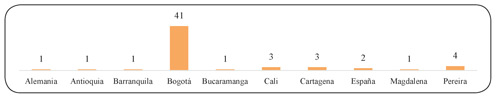Asimismo, se tiene que las ciudades que más investigan sobre los sectores económicos empleando DEA son: Bogotá (41 investigaciones), Pereira (4 investigaciones), Cali (3 investigaciones), y Cartagena (3 investigaciones) (gráfica 4).