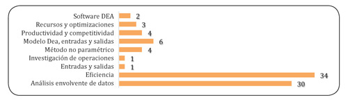Finalmente, las palabras claves más utilizadas por los autores de los documentos fueron: "eficiencia", "Análisis Envolvente de