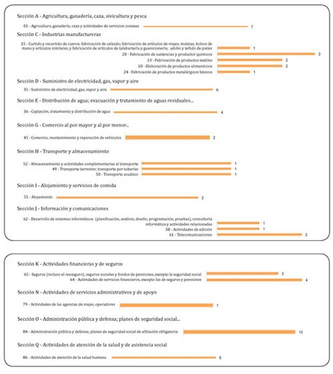 Secciones del CIIU abordadas por la metodología DEA.
