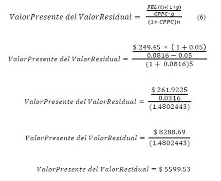 Paso 7: Cálculo del Valor Presente del Valor Residual o de continuidad de los Flujos de Efectivo Libres: