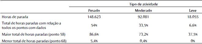 Na Tabela 1 observa-se que, em atividades pesadas, há localidades onde o cumprimento da norma definiria paradas em mais de 80% do tempo de trabalho. Considerando o todo da região Nordeste, esse total ultrapassaria 50% de todo o período de trabalho.