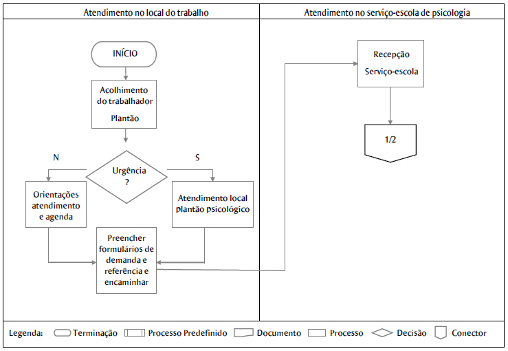 Mediante a análise das prioridades e do interesse do trabalhador, o plantonista tinha a possibilidade de fazer encaminhamentos após o atendimento no plantão. Uma das alternativas possíveis, quando necessário, era o encaminhamento para atendimento na clínica-escola de psicologia (Figura 2).