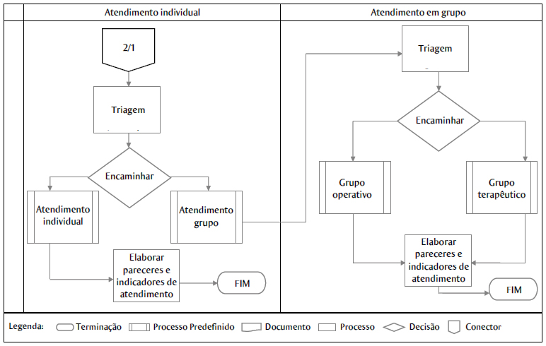 Para melhor esclarecer o processo de atendimento em contexto ocupacional, foram elaborados fluxogramas (Figuras 1 e 2). As prioridades de atendimento também foram categorizadas, assumindo a seguinte estrutura: Prioridade 1 - atendimento de emergência (quando há uma situação que não pode ser adiada); Prioridade 2 - atendimento de urgência (quando há uma situação crítica ou algo iminente); e Prioridade 3 - atendimento eletivo (não apresenta as características anteriores). Tais prioridades se referem tanto à gravidade da situação analisada (e.g., tentativa de suicídio, transtorno de ansiedade generalizada, transtorno de estresse pós-traumático) quanto à percepção da gravidade do evento pelo trabalhador.