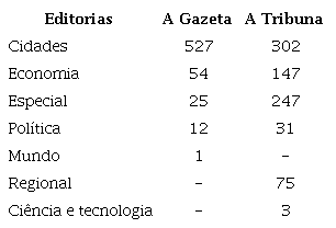 Vale destacar o cenário em que se constituiu o jornalismo no ES. De acordo com Silva et al. (22, tradicionalmente considerava-se que o jornal A Gazeta destinava suas matérias prioritariamente a um público mais elitizado e, portanto, constituía-se em um jornal mais conservador. Em contrapartida, o jornal A Tribuna teria um foco maior nas classes mais populares. Entretanto, afirmam os autores, esses perfis têm se confundido na atualidade devido à precariedade das próprias redações e às reformulações estéticas e editoriais ocorridas ao longo dos anos. Por isso, cada vez mais esses periódicos têm se apresentado com abordagens semelhantes, homogêneas e similares, dificultando a distinção de um perfil elitista ou popular22.