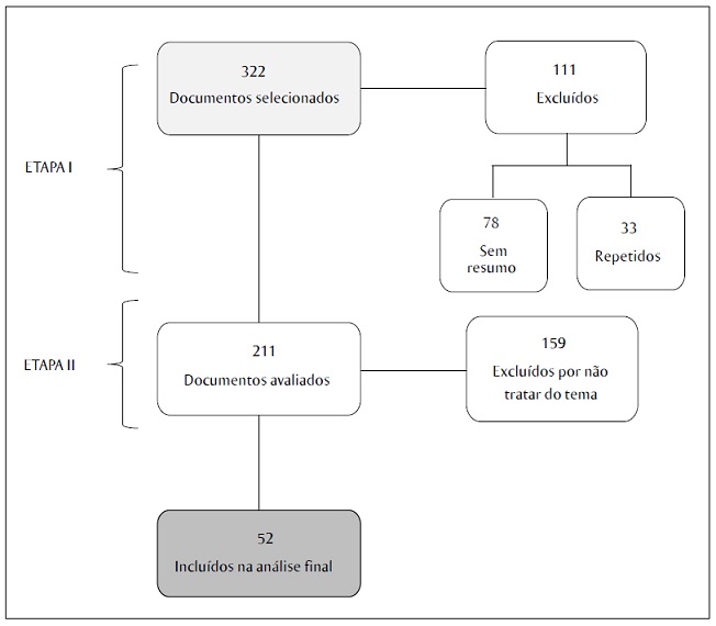 Ao final das etapas de busca e seleção foram analisados 52 documentos, conforme pode ser visto na Figura 1.