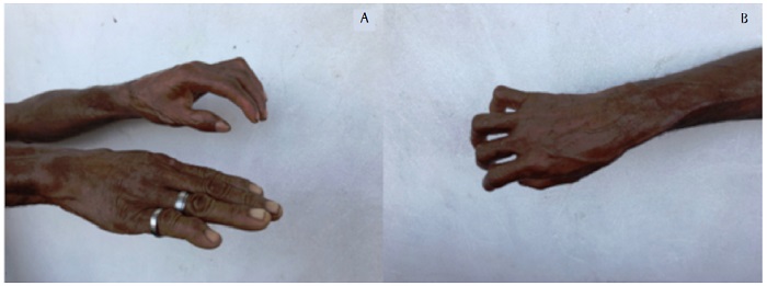 Foram observadas sequelas mesmo após a recuperação completa do quadro infeccioso. Dentre elas, a mão em garra e a atrofia muscular com perda parcial dos movimentos e da sensibilidade do membro, incapacitando-o definitivamente para o exercício das atividades profissionais (Figura 3).