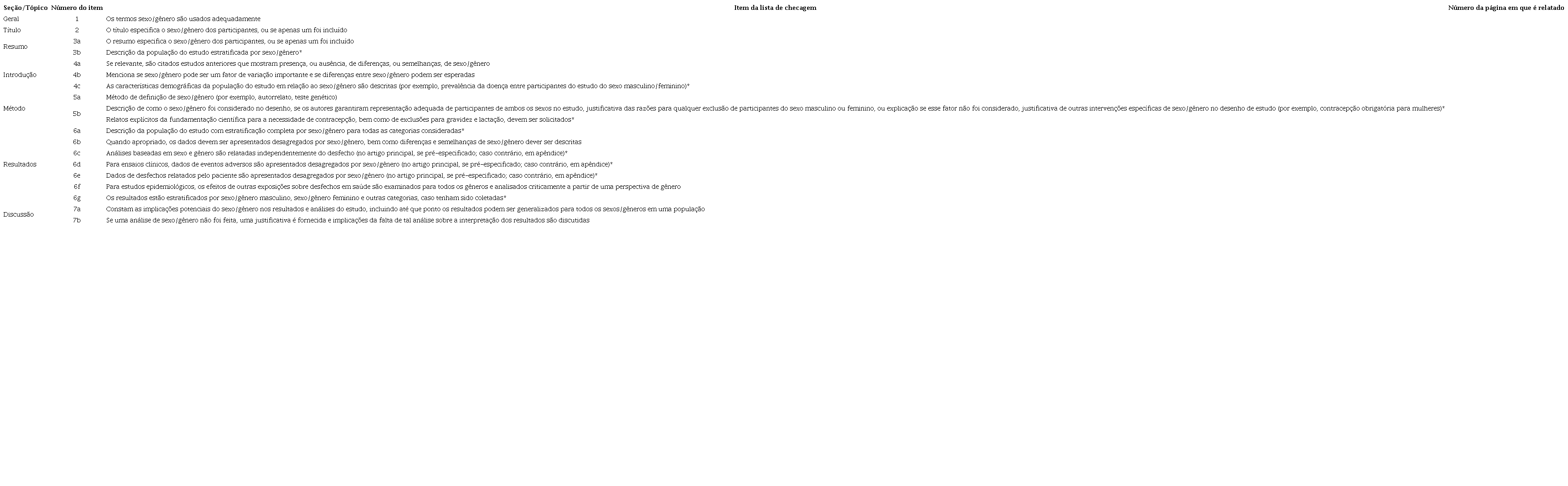 Equidade de sexo e gênero na pesquisa e na publicação científica: as diretrizes SAGER e suas listas de verificação