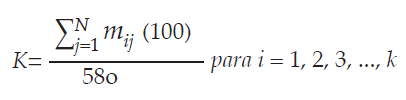 • La frecuencia es el porcentaje de sitios de muestreo donde una especie está presente. Para calcular la frecuencia de especies “K” en los 580 transectos, se creó una matriz de “presencia-ausencia”, donde sus elementos m(i,j) = 1 si la especie estaba presente en el transecto “j” y 0 en caso contrario.