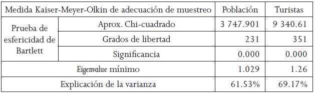 Los resultados del análisis factorial exploratorio demuestran que existen algunos factores de la competitividad de los destinos turísticos que los agentes interesados pueden percibir; también sugieren que el método funciona como procedimiento de reducción y agrupación de datos, pues la cantidad de escalas disminuyó a la mitad en el caso de la población local y a más de la mitad en los turistas, lo cual permite generar un modelo teórico más sencillo, para analizar con mayor profundidad los aspectos más relevantes del objeto de estudio.
