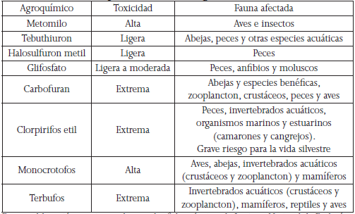 Las tierras rentadas por compañías tequileras se fumigan con avionetas para combatir las plagas. En la etapa de plantación del agave azul es cuando se usan más agroquímicos que en el resto del ciclo, cuando las aplicaciones son periódicas; entre los más empleados están: me-tomilo (Lannate), tebuthiuron (Combine 500), halosulfuron-metil (Sempra), glifosato (Faena), carbofuran (Furadan 350L y Furadan 5G), clorpirifos (Lorsban 5G), dicloruro de 1,1'-dimetil-4,4'-bipiridilo (Paraquat, Gramoxone), monocrotofos (Nuvacron), terbufos (Counter 5 por ciento), mancozeb (Manzate), sulfato de cobre y cal agrícola (Flores y Zamora 2003). La fumigación también perjudica la producción de miel, porque las colmenas que se encuentran cerca de estos predios se intoxican, y dejan de producirla (Núñez 2011) (véase Figura 4).