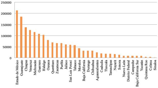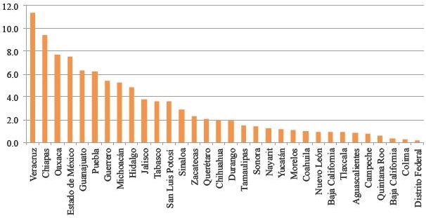 En Veracruz, Chiapas, Oaxaca y Guerrero, en conjunto, se concentra la tercera parte de toda la población rural en el país; la ubicación geográfica de ésta se relaciona con su grado de marginación y pobreza, pues las personas que habitan en asentamientos aislados y dispersos enfrentan mayores rezagos sociales en educación, salud, servicios básicos y vivienda (Secretaría de Gobernación, SEGOB 2009) (véase Figura 3).