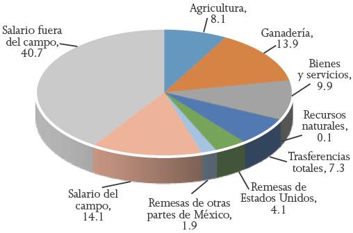 En este trabajo se muestra la importancia del sector no agropecuario como estrategia de generación de ingresos para la población rural. Los resultados confirman que en el campo mexicano está ocurriendo una transición de la fuerza de trabajo del sector agropecuario al no agropecuario, ya que el primero dejó de generar los ingresos suficientes para el sustento de las familias, así que los integrantes del hogar en edad de trabajar buscan opciones de empleo fuera del campo. El desplazamiento de la fuerza de trabajo ocupada en dicho ramo hacia otros se ve reflejado en la composición del ingreso, donde la mayor proporción es por la vía de los salarios de las actividades no agropecuarias.