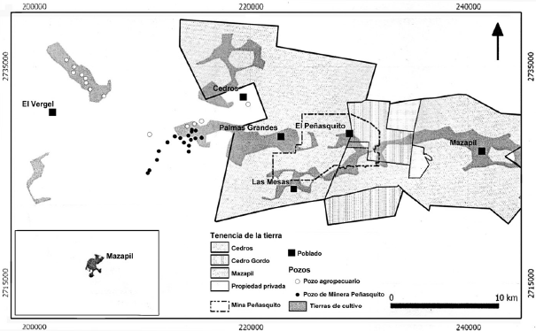 La llegada de la empresa Peñasquito, en 2006, junto con la desamortización sustancial, que desde 1992 permitió la nueva legislación agraria, están modificando radicalmente la complementariedad histórica entre agricultura, ganadería y minería en la región. Existe, por un lado, el horizonte localista arraigado en la tierra y el ejido y, por el otro, el globalismo representado por relaciones laborales móviles e inestables, típicas de un capital financiero disociado del territorio. Ahora bien, hasta 2007, año en que Goldcorp Inc. (la minera titular) empezó la construcción del megaproyecto, asociado con la extracción y procesamiento de los metales (oro, plata, zinc y plomo), la dimensión agrominera del valle de Mazapil no se había modificado sustancialmente por las grandes inversiones del capitalismo global. Esto quiere decir que las actividades industriales del pasado no habían logrado subvertir el patrón histórico regional, ya que las empresas no necesitaban un sistema de explotación masivo de los recursos (sociales y ambientales) autóctonos. Por el contrario, la nueva trasnacional no puede prescindir de una ocupación extensa y prolongada del territorio, ya que la extracción a tajo abierto, que se practica en este contexto, necesita una porción inmensa de tierras para el desarrollo de las diversas fases de su cadena productiva. Según comunicaciones oficiales de la empresa, se necesitan 18 años para explotar los recursos metalíferos del área. Sin embargo, los ejidatarios propietarios de las tierras incluidas en la zona minera las rentaron por 30 años, y algunos testimonios locales afirman que la compañía está adquiriendo más terrenos explotables, adyacentes o próximos al parque industrial actual. El sistema agrario del valle de Mazapil sigue girando alrededor de la figura institucional y social del ejido. Las tierras que hoy ocupan las instalaciones fabriles de la minera son propiedad de cuatro núcleos ejidales principales: Mazapil, Cerro Gordo, Cedros y El Vergel, todos pertenecientes al municipio de Mazapil. Como se ha visto, a pesar de la complejidad del proceso histórico mazapilense, la propiedad social de la tierra es la que ha caracterizado, de una forma tajante e incontrovertible, la vida de la región desde el comienzo de la Reforma Agraria. La estructura histórica que soporta al sistema actual de relaciones comunitarias constituye un claro obstáculo operativo para la moderna empresa de capitales y, al mismo tiempo, un atavismo cognitivo. Pese a la falta de lazos de identidad densos, el territorio de Mazapil mantiene todas las características de una sociedad campesina tradicional. A partir de sus comienzos, la aventura liberal va dejando en el camino la centralidad de la relación entre la tierra y la comunidad (Guzmán 2016). Sin embargo, la empresa capitalista tiene la necesidad apremiante de controlar la tierra para adueñarse de sus recursos, a los que proyecta fuera del espacio productivo local. En el caso de Mazapil, la racionalidad instrumental de la organización capitalista, representada por la minería, se apoya en estrategias que debilitan el funcionamiento comunitario del ejido, haciendo hincapié en estímulos que favorecen la adopción de una praxis de acción individual y autónoma por parte de los actores locales. La política de relaciones públicas de la compañía se ha dirigido a personalizar las negociaciones, lo que el cuadro normativo vigente le ha facilitado. El comunitarismo de la organización ejidal, no muy profundo en Mazapil por las circunstancias históricas mencionadas, había conseguido convertir la política agraria inicial, de comienzos del siglo XX, en un sistema de costumbres y de patrones de comportamiento reiterados. La Ley Agraria de principios de los años noventa agrietó este sistema, y les otorgó derechos plenos a los ejidatarios para disponer de la tierra, y ya no están obligados a trabajarla, como lo imponía los ordenamientos precedentes. En el contexto del rezago estructural del campo mexicano estas medidas han logrado, sólo en parte, generar la formación de una propiedad individual pequeña y mediana; en la mayor parte de los casos, han alentado a los campesinos a deshacerse de sus parcelas por necesidad, a cambio de compensaciones menguadas (De Ita 2003). A pesar de mantener formalmente el régimen de propiedad comunal, resulta evidente que las reformas a las legislaciones agraria, minera y de inversión extranjera han debilitado los núcleos ejidales favoreciendo las acciones de un mercado de tierras, que ya no las considera como un recurso para las comunidades, sino como un producto susceptible de capitalización. En Mazapil, la minera Peñasquito tuvo que construir una estrategia que le garantiza la disponibilidad de las tierras necesarias para sus actividades industriales. Por lo que concierne a la negociación de las tierras comunes de agostadero pertenecientes a los ejidos, sobre todo a Cedros, al principio la compañía les ofreció a sus representantes institucionales un pago por poco más de 50 mil pesos por ejidatario, por el arrendamiento durante 30 años del núcleo territorial sobre el cual se iba a instalar el proyecto. En una segunda negociación, la minera y el ejido Cedros celebraron otro contrato en el que éste concedía, por el mismo lapso, más de 5 500 hectáreas de tierra (una cuarta parte de su territorio) en arrendamiento por poco más 40 millones de pesos. Además, la empresa había propuesto financiar una tortillería y una planta de procesamiento de carne, para abastecer de alimentos a sus empleados; otorgar becas escolares a los niños; favorecer la ocupación contratando a trabajadores locales y construir un centro de salud, para resolver la difícil situación sanitaria que obliga a los residentes a trasladarse a centros de atención distantes. Por otro lado, aprovechó el dilatado margen de acción que le permitían las normas en materia de legislación agraria