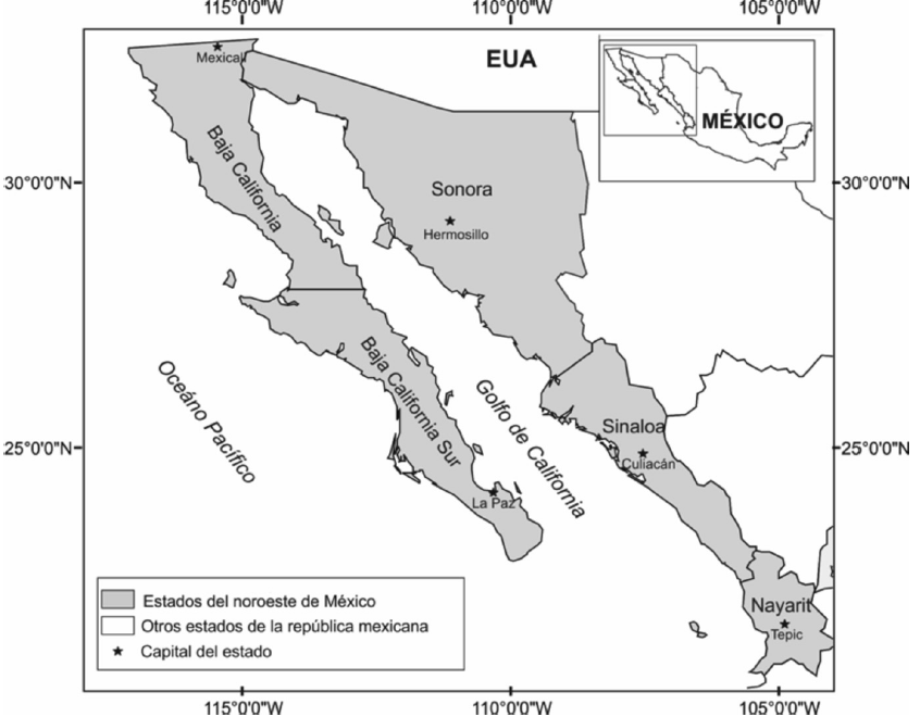 Para el noroeste de México, la información es escasa sobre cualquier tema asociado con la CI en general; y prácticamente nula con respecto a la presencia de EPE. Por ello, una vez seleccionado el marco analítico desarrollado por Romero-Lankao et al. (2013a, 788), se presenta una revisión de la CI para los estados costeros del noroeste de México (BC, BCS, SON, SIN y NAY). Esta región se seleccionó porque dichas entidades son altamente vulnerables a la presencia de EPE, debido a su ubicación geográfica, además de que ya han sufrido los embates de dichos fenómenos y registrado pérdidas económicas cuantiosas.