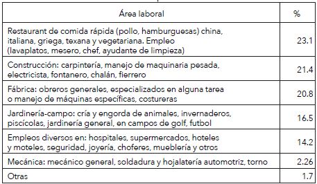Los especialistas evidencian que entre más preparada se encuentra la persona al ejecutar una tarea, es más fácil que la aprenda y la mejore (Cohen y Levinthal, 1990; Polanyi, 1967). Los mexiquenses partieron con nueve grados escolares y experiencia laboral, pero además llevaban las imágenes de la necesidad en sus hogares, esto ayuda en el aprendizaje. Durante el tiempo que estuvieron en el extranjero desempeñaron tareas de alta y baja calificación (lavaplatos, mesero, ayudante de limpieza, chef, ayudante de albañil, soldador de estructuras, plomero, carpintero, conductor de maquinaria de demolición, obrero, chofer, operador de maquinaria especializada, manager) (véase Tabla 2).