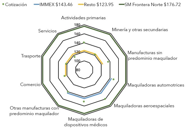 En el paquete económico se juzga que el trato diferencial para la RFN tiene como fin incrementar su competitividad productiva e industrial, atraer inversión para generar más empleos, fomentar el consumo de sus habitantes, aumentar el comercio nacional y contener los flujos migratorios. Hay que destacar que la RFN tiene mayor apertura económica que el resto del país, también posee acceso diferenciado a los mercados internacionales de bienes y trabajo, que su grado de tercerización es alto (principalmente en turismo y comercio), y además desarrolla cultura, patrones de migración y procesos sociales propios. Cuenta también con relevantes sectores de actividad, como la industria manufacturera, maquiladora y de servicios de exportación (IMMEX).1 En pocas palabras, en el paquete económico se asume que la estructura económica industrial interna y la ubicación geográfica de la RFN constituyen una oportunidad para alcanzar los fines nacionales antes mencionados.