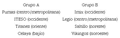 La mayoría de quienes se encuentran en los equipos no fue parte del evento en que se establecieron las regiones y, aunque un gran número señala que es una forma correcta de regionalizar, reconoce que la composición de la región y la situación actual de ésta no les favorece. Por un lado, se considera que la región es adecuada porque se ve como un requisito formal para el desarrollo del Campeonato y, a su vez, porque está definida por estados colindantes y, en consecuencia, “cabe en lo más cercano para cada uno” (E. Macossay, 2019) y facilita no “estar viajando de extremo a extremo del país” (Gómez Rodríguez, 2019). Por otro lado, aun teniendo presente lo anterior, se observan problemas que dan señales de que esta regionalización no es del todo correcta.