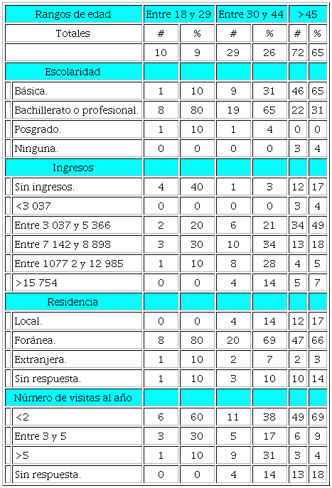 El estudio partió de la caracterización de los consumidores para detallar cuáles perfiles mostraban mayor preferencia hacia los alimentos artesanales, las razones y la valoración del potencial de la PAA. Las variables consideradas fueron edad, escolaridad, ingresos, lugar de residencia y número de visitas al año. La selección de los informantes fue aleatoria. Por ello los bloques integrados a partir de la edad fueron proporcionalmente asimétricos y no comparables entre sí; por lo tanto, los datos que se muestran en la Tabla 4 reflejan los pesos específicos de cada reactivo al interior de cada segmento.