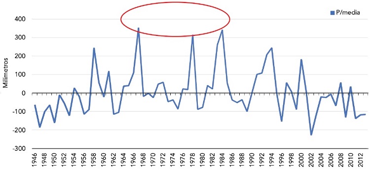 A partir de estas afirmaciones, se revisaron las precipitaciones registradas entre 1946 y 2013 en la estación El Ranchito, Ímuris (véase Figura 6).