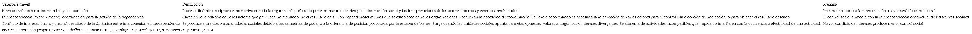 La TCSO sostiene que las actividades de las organizaciones y sus resultados están determinados por el contexto en el que la organización está incrustada (Blau, 1964; Jacobs, 1974; Pfeffer y Salancik, 2003). En el presente estudio se retoman la interconexión, la interdependencia y el conflicto de intereses como elementos de la TCSO para construir una contextualización teórica a partir de los actores involucrados en el fenómeno bajo investigación.
