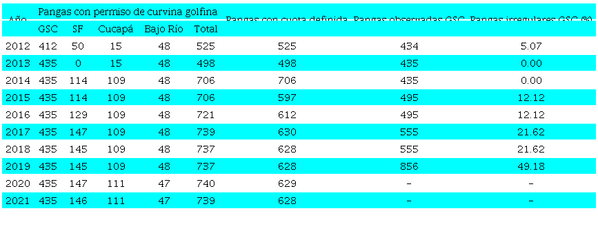 b Para algunos años no se cuenta con una cuota específica para cada localidad, en estos casos se hicieron estimaciones conforme al número de pangas autorizadas y la cuota global