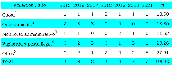 4 De los cinco acuerdos que se tomaron en 2021, tres de ellos son llamados a las autoridades alertando de pesca ilegal.