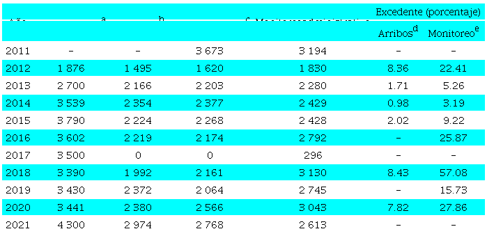 f El monitoreo de 2020 y 2021 se hizo de manera voluntaria.