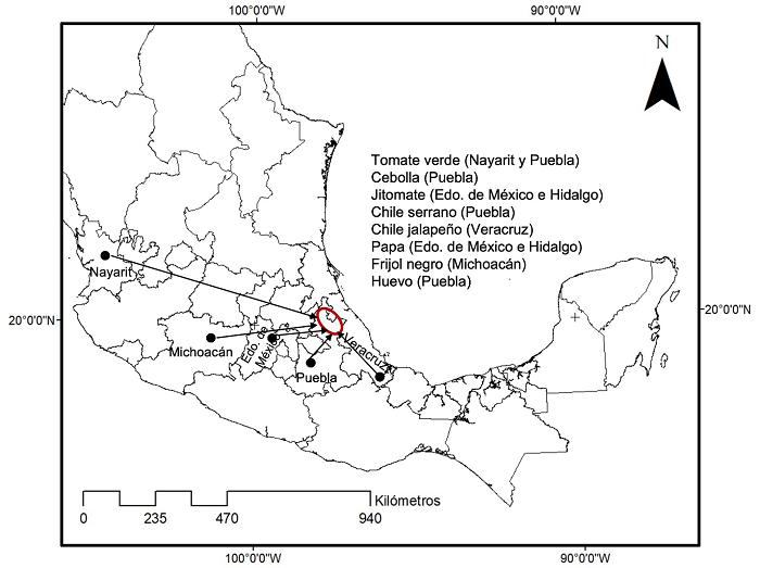En la misma base de datos cada alimento consumido se clasificó según su procedencia: a) los alimentos de producción propia corresponden a los que se colectan, fomentan, cultivan, cazan y crían en algún agroecosistema manejado por las familias; b) los alimentos de producción local o regional son los que se colectan, fomentan, cultivan, cazan y crían dentro de las mismas localidades o en la región y que la familia encuestada adquirió a través de la compra; c) los alimentos que no se producen en la región y que se compraron en tiendas de abarrotes y en los mercados regionales llamados tianguis.