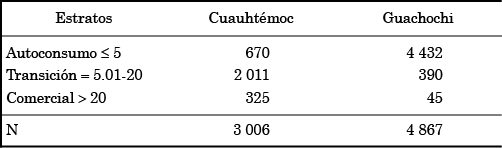 Lo anterior se debe a que pese a que los agricultores de Guachochi se encuentran dentro del estrato de agricultores comerciales en función de la extensión de la propiedad, su producción no es enfocada principalmente al mercado, sino al autoconsumo, y complementan su ingreso especialmente de actividades no agropecuarias.