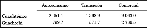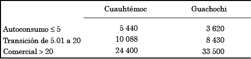 Los agricultores agrupados en el estrato de productores de autoconsumo en el municipio de Cuauhtémoc tienen un ingreso total promedio de $7 053.3 mensuales, el cual considerando el promedio de dependientes (3) resulta ser de 2 351 (cuadro 5), cantidad que supera las líneas de pobreza por ingreso para el 2013.4
