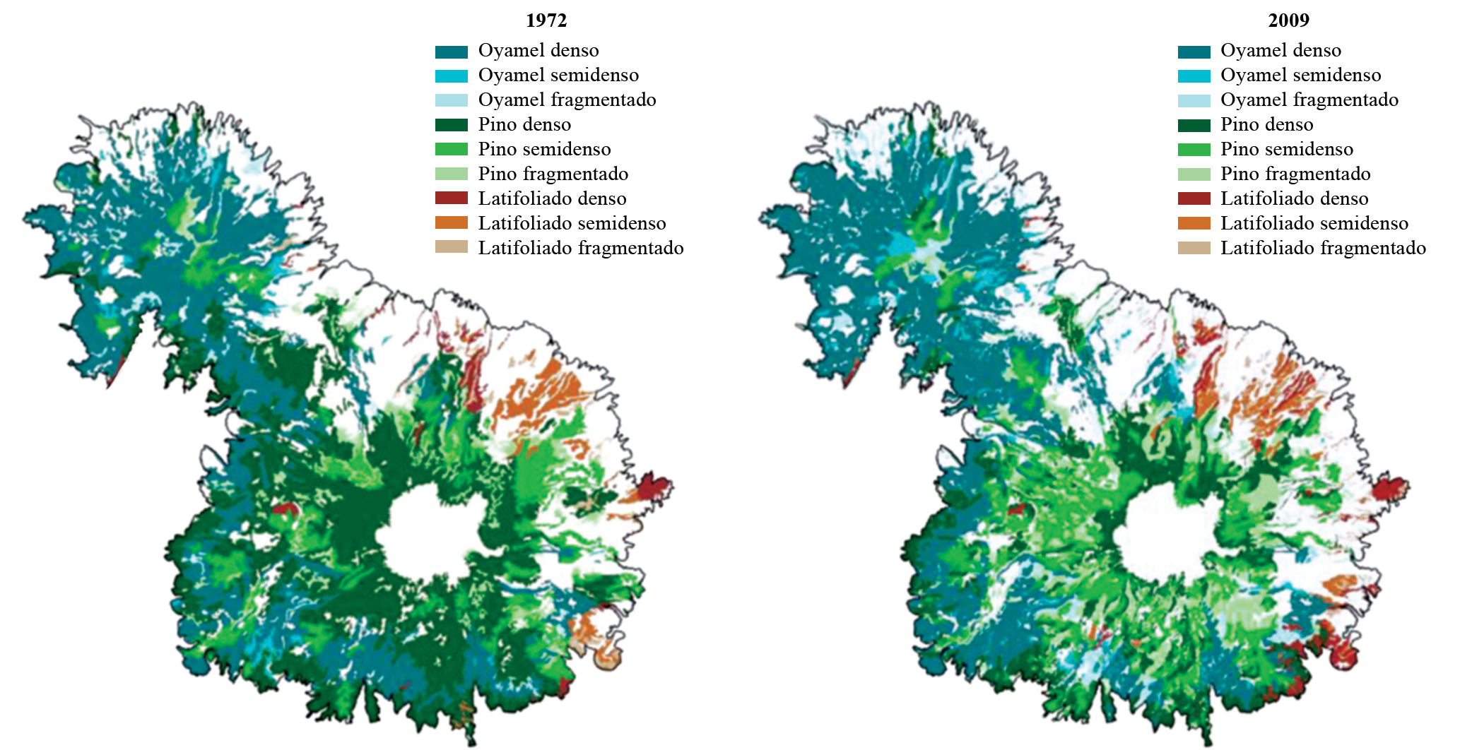 La disminución en la cobertura forestal, el pastoreo e incendios forestales en los bosques de pino (Franco et al., 2006) y la tala inmoderada en el bosque de oyamel (Villers et al., 1998) proveen información necesaria para el análisis y la relación con el papel de los actores locales en la conservación o deterioro de estos recursos.