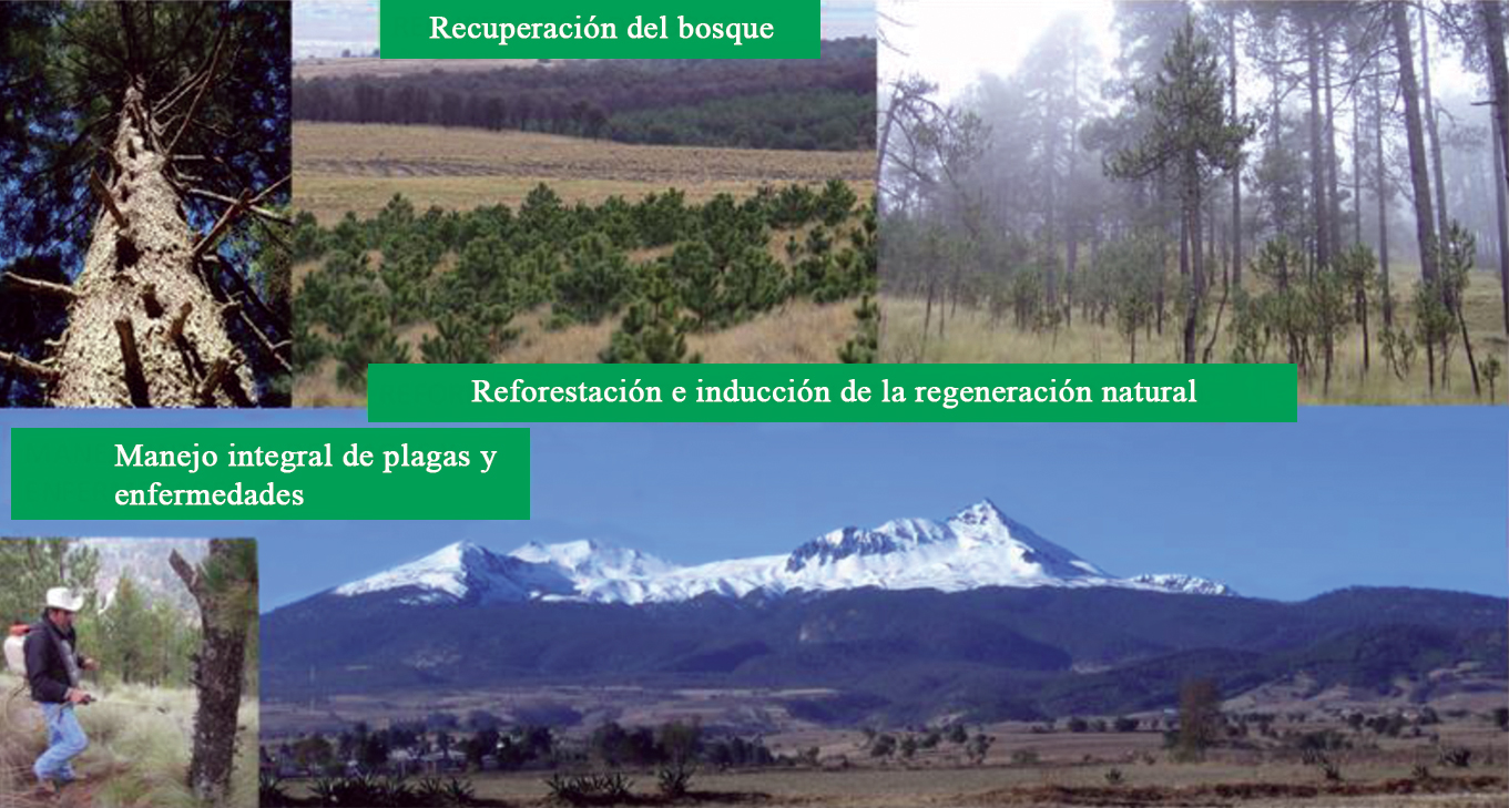 Bajo el esquema de una fuerte incidencia de plagas y plantas parásitas en estos bosques, es importante el análisis de las posibles alternativas para contrarrestar esta problemática, lo que implica la búsqueda de arbolado sano en zonas infestadas que, en teoría tienen cierta resistencia a dichos patógenos, por lo que, la colección de semilla, remoción de suelos e incendios controlados podrían inducir el renuevo natural de esta especie, así como el inicio de los procesos de adaptación a las nuevas condiciones de clima. Asimismo, es necesario retomar las investigaciones en manejo integrado de plagas, donde uno de los componentes principales es el control biológico, que en el caso de los bosques del Nevado de Toluca aún no ha sido abordado, por lo menos para el manejo de sus bosques.