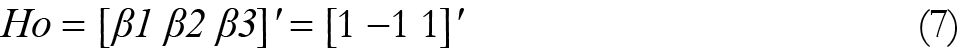 Normalizando β1 = 1 el vector cointegrante ( β ) a contrastar es (1 -1 1), el anexo A3 y anexo A4 presentan respectivamente las estimaciones del vector β así normalizado y el contraste implícito de la lpu . Es de notarse que el vector cointegrante en un modelo de corrección de error no es único, pues sólo enfatiza que dada la propiedad de cointegración una combinación lineal es estacionaria en niveles; por lo anterior, la normalización a 1 del coeficiente de la tasa de cambio es arbitraria para hacer específico dicho vector y se deja así sólo dos grados de libertad.