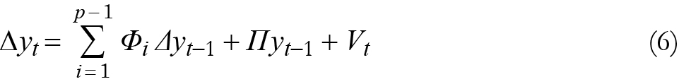 Donde la matriz Π = αβ';β es una matriz r × m de rango r de vectores cointegrantes o de largo plazo y α es una matriz m × r de vectores de ajuste.