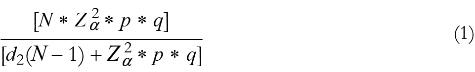 Donde N = inventario regional de guajolotes, Zα = 1.962 con una seguridad de 95%, p = proporción esperada de 5% (0.05), y q = 1 - p = 1 - 0.05 = 0.95. El número de encuestas arrojado fue de 339 que se aplican durante las 28 semanas del periodo de engorda de 2011: Toluca 40, Zumpango 71, Texcoco 27, Tejupilco 13, Atlacomulco 130, Coatepec Harinas 6, Valle de Bravo 29 y Jilotepec 33.