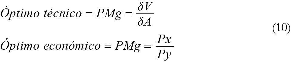 Palabras clave: óptimos técnico, óptimo económico, función de producción.