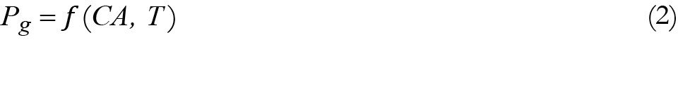 Donde, Pg es el peso vivo máximo óptimo del guajolote (en kg), CA el consumo de alimento (en kg) y T la tecnología, entendida como el conocimiento sobre los métodos que podrían aplicarse para transformar los factores productivos en productos (Pindyck y Rubinfeld, 2009) o, dicho en otras palabras, el sistema de producción que implementa cada unidad meleagrícola para transformar el alimento en guajolote en pie.