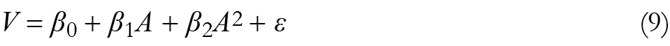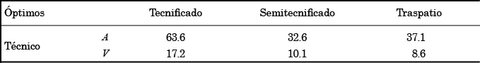 Donde V es la variable dependiente equivalente al peso vivo del guajolote expresado en kg, A la variable independiente asemejada al consumo de alimento referido en kg/semana y β el coeficiente de regresión. Todos los datos para i = 0, 1, 2. Una vez estimados los modelos, se calcularon los óptimos para cada sistema aplicando las siguientes expresiones matemáticas: