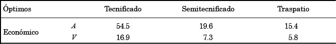 Ante los resultados anteriores, en los tres tipos de unidades meleagrícolas se cumple el supuesto teórico de que el óptimo económico se encuentra por debajo del técnico, aunque con un marcado contraste entre PMe y PMg .