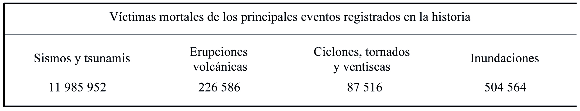 En este legado se reconoce que los eventos que encuentran un origen natural y que han cobrado el mayor número de víctimas humanas se relacionan con la actividad endógena del planeta, la cual se encuentra relacionada con el desplazamiento de continentes, la liberación de tensión entre placas tectónicas y las actividades propias emanadas por la dinámica volcánica que se caracteriza por la generación de tremores, enjambres sísmicos, flujos lávicos, nubes piroclásticas o con la gestación de tsunamis (cuadro 1).