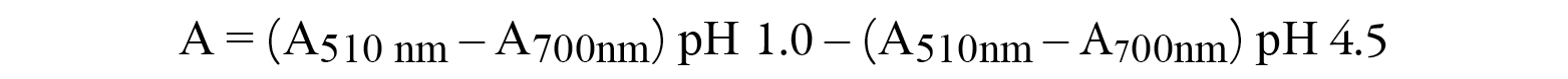 Para determinar el contenido de antocianos de los subproductos bajo estudio se siguió la metodología descrita por Giusti y Wrolstad (2001). La absorbancia final se obtuvo mediante la ecuación 1: