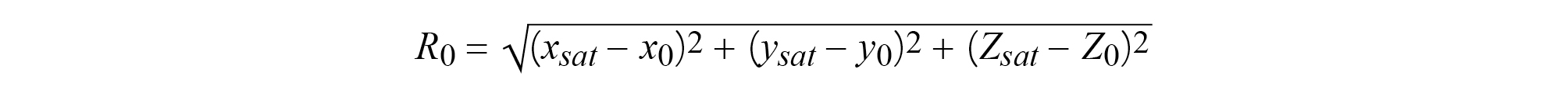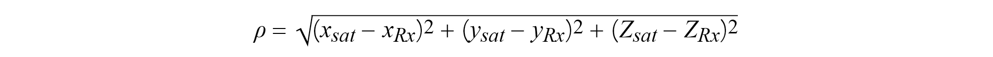 La distancia geométrica entre el satélite y el receptor es calculada en función de las coordenadas del satélite (xsat, ysat,zsat) y del receptor (xRx, yRx, zRx).