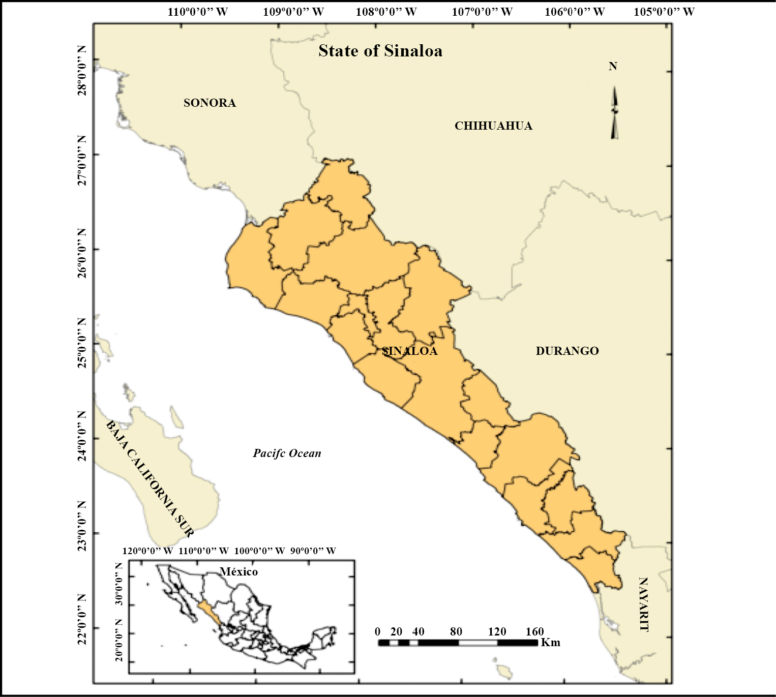 El área de estudio se encuentra en la ciudad de Culiacán, capital del estado de Sinaloa, al noroeste de México. Sus coordenadas son 24° 48' 15'' N y 107° 25' 53'' O y se sitúa a 54 msnm (mapa 1).