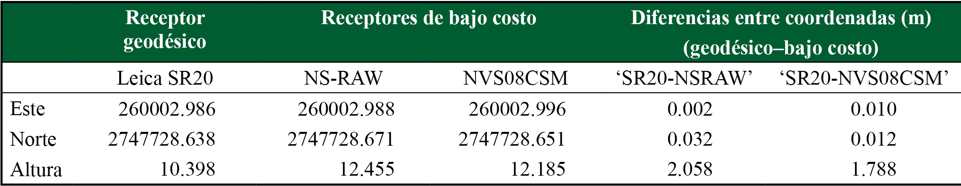 Los receptores fueron colocados sobre la misma estación de prueba (figura 5) y manipulados con RTKLIB a través de Raspberry Pi; su tarea fue llevar a cabo el monitoreo de las observaciones y el almacenamiento de los datos.