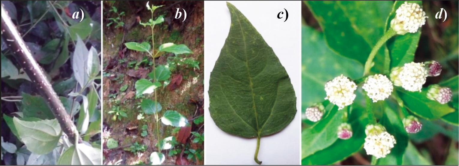 La planta muestra el crecimiento en forma de bejuco, las raíces son adventicias y los tallos herbáceos y leñosos son redondos con lenticelas vistosas. El cámbium vascular muestra consistencia carnosa; las hojas muestran peciolo acanalado (1.56-2.42 cm), lámina ovada-lanceolada (11.33 × 4.58 cm, 12.67 × 6.58 cm), el ápice es acuminado y agudo-obtuso, la base es redondeada o decurrente, el margen es especialmente dentado a casi entero, la textura es coriácea y glabra; la filotaxia es decusada. Las inflorescencias muestran forma de panícula cimosa, tienen de 7.7 a 8 mm de largo × 4.3 a 6.9 mm de ancho, flores blancas campanuladas-gamopétalas de 21 a 37, en algunas plantas la prefloración presenta un color morado; corola de 2.9 a 3 mm de largo por 1.5 a 1.8 mm de ancho; vilano de 3 a 3.2 mm de largo × 1.4 a 1.5 mm de ancho. Las plantas encontradas de 1 208 m a 2 135 m de altitud mostraron cáliz de color morado en la etapa de prefloración, y en el caso de las plantas encontradas a una altitud de 506 m no se presentaba esta característica (figura 3). Las características morfológicas son similares con estudios de Bolick (1991) y Rzedowski et al. (2011), a excepción del color de la floración.