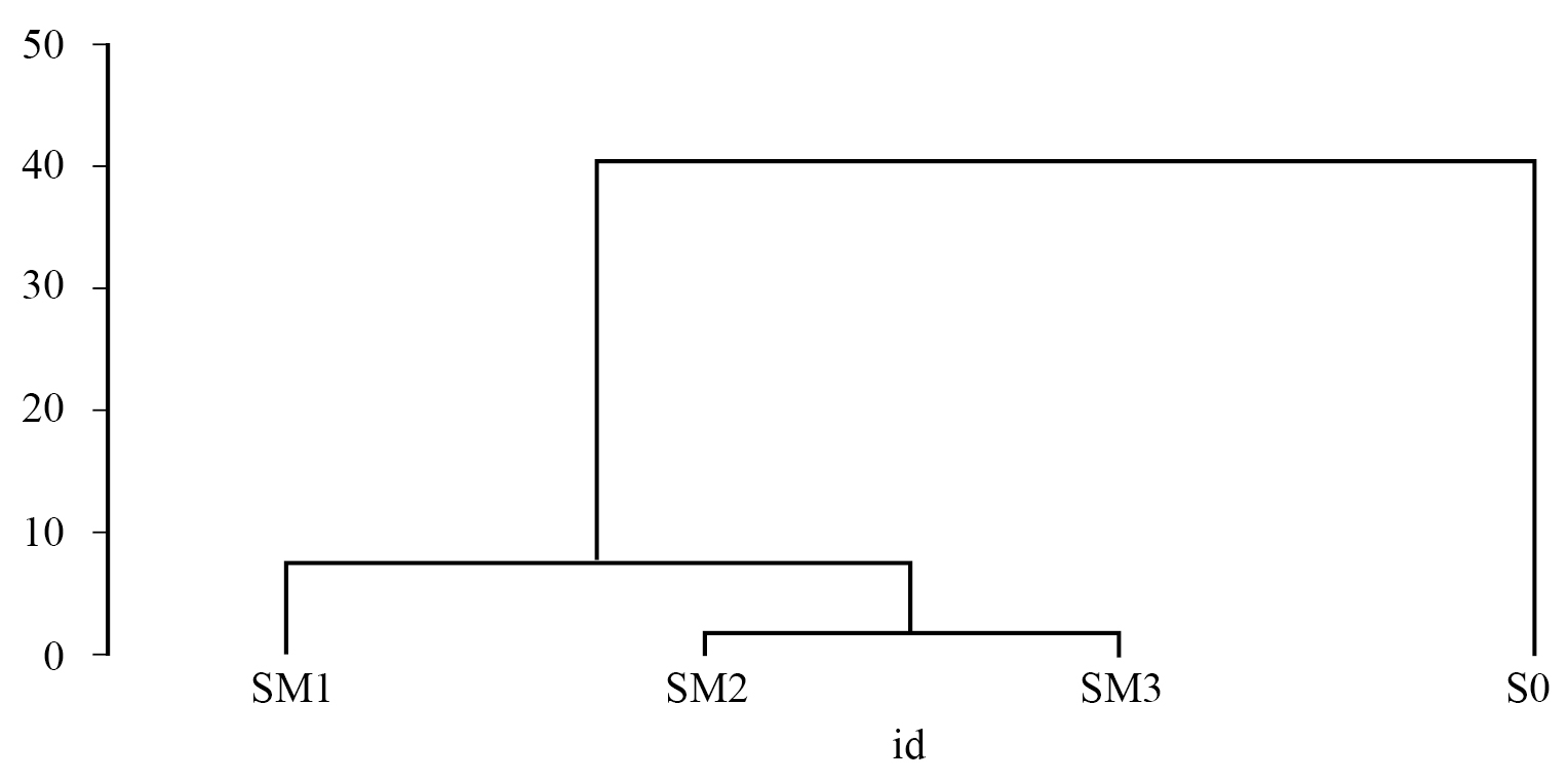 Los ejemplares se agruparon de la siguiente manera: SM1, ejemplares de estrato bajo; SM2, ejemplares de estrato medio; SM3, ejemplares de estrato alto y SO, S. oligocephala planta testigo.