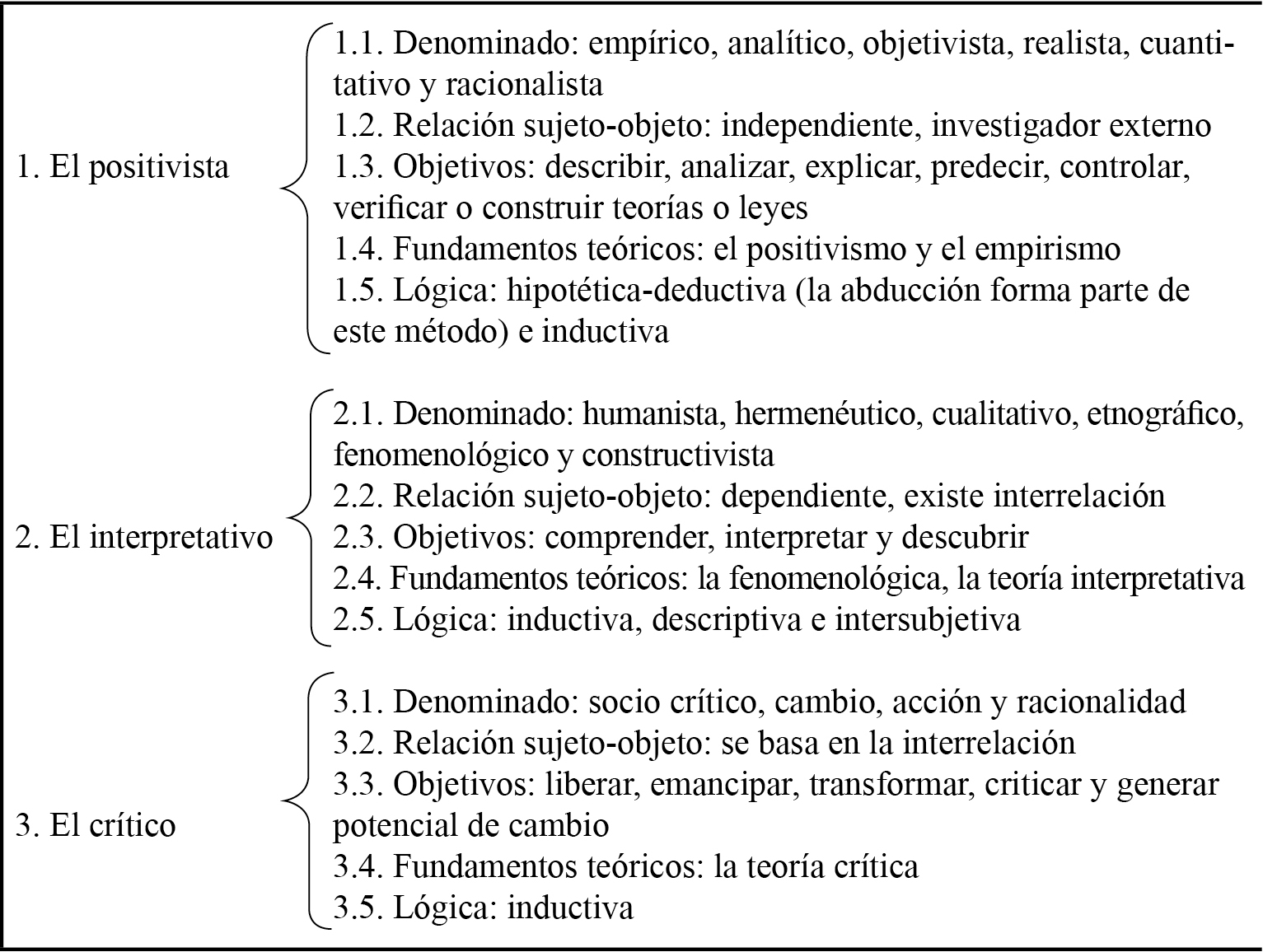 Otro aspecto importante a considerar es que la selección del paradigma epistemológico afecta cómo se abordará la investigación. Desde la perspectiva de Carr y Kemis (1988) pueden reconocerse tres paradigmas, como se evidencia en cuadro sinóptico de la figura 2.
