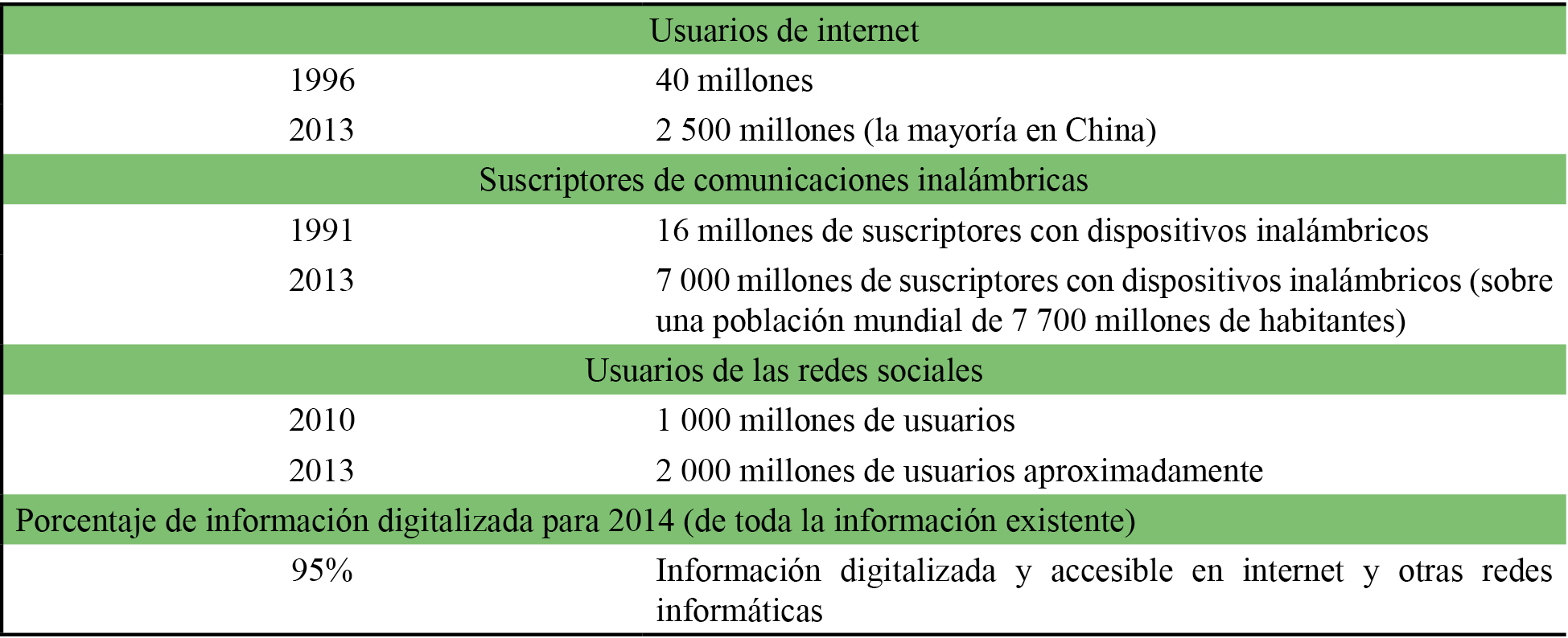 En esa misma dirección, Castells (2014) realiza una compilación de datos que demuestran la veracidad de las diferencias indicadas (tabla 1).
