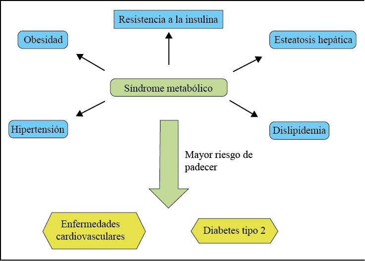 En el último siglo se ha observado un aumento en todo el mundo de las enfermedades crónicas no transmisibles. Estas enfermedades son padecimientos con un desarrollo muy lento, no son contagiosas y en la mayoría de los casos son incurables, pero sí tratables. El síndrome metabólico representa el mejor ejemplo de este tipo de enfermedades, además de que es un importante problema de salud pública tanto en México (Barba-Evia, 2018) como en el mundo (WHO, 2015; GBD, 2017). Este síndrome es definido como una constelación de factores bioquímicos, clínicos y metabólicos interconectados que incrementan el riesgo de padecer enfermedades cardiovasculares (hipertensión, enfermedad cardiaca coronaria, cerebrovascular, arterial periférica, cardiopatía reumática, cardiopatía congénita e insuficiencia cardiaca) y diabetes tipo 2 (McCracken et al., 2018) (figura 1).
