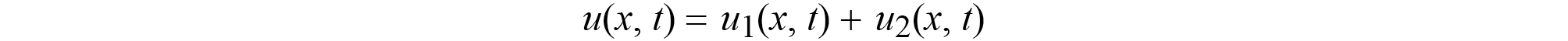 Para estudiar la interacción de solitones se puede buscar la solución de la ecuación (1), como la superposición lineal de dos solitones individuales que representan la propagación de ondas, así la derecha e izquierda respectivamente: